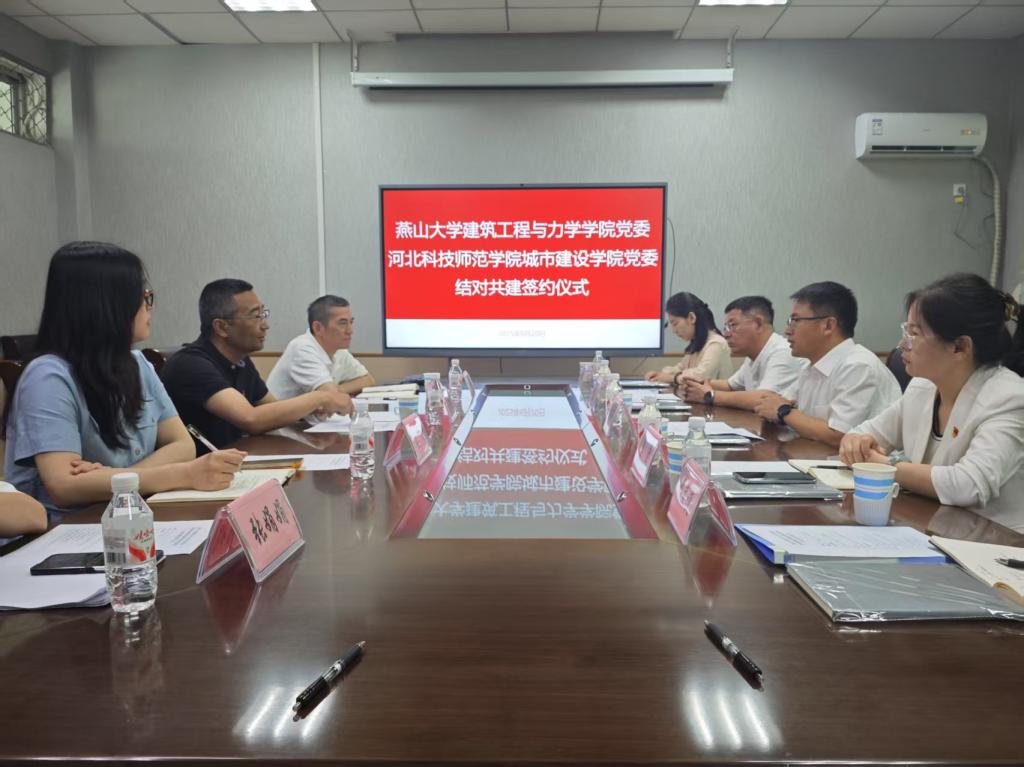 ?2025年6月20日,城市建設學院黨委與燕山大學建筑工程與力學學院黨委黨建共建簽約儀式在燕山大學建筑工程與力學學院辦公樓會議室舉行。兩院黨委書記、院長、黨委副書記、學生黨務負責人、黨委專職組織員、分團委書記出席簽約儀式。城市建設學院黨委與燕山...